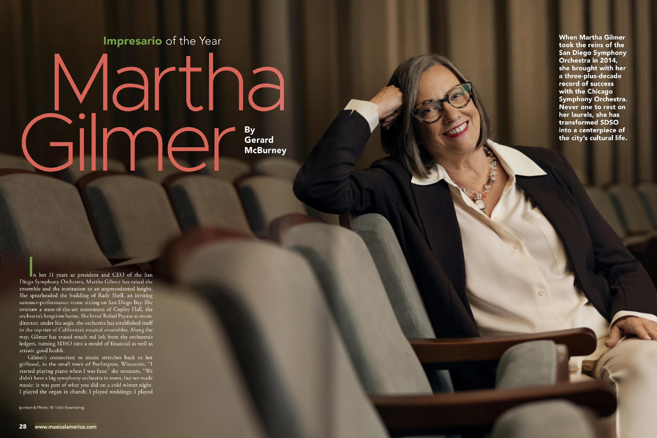 Martha Gilmer, president and CEO of the San Diego Symphony, has been named Musical America’s 2026 Impresario of the Year, a distinguished honor in the performing arts. As Musical America celebrates the 65th year of its awards program, this rare recognition honors Martha’s creativity, vision and...